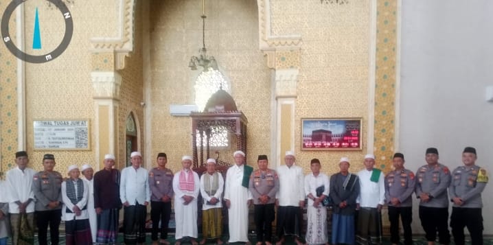 Kegiatan diakhiri dengan foto bersama dan penyerahan bantuan kecil dari pihak kepolisian kepada pengurus masjid sebagai bentuk dukungan terhadap aktivitas keagamaan dan kemasyarakatan di wilayah tersebut.