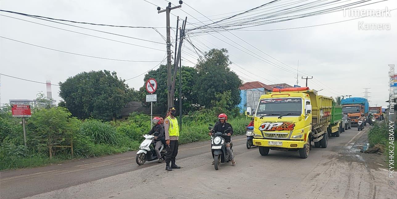 Strong Poin Sore Hari, Iptu Yudi Kanit Binmas Laksanakan Pengaturan lalu lintas Di Jalan Raya Wadas Bojonegara