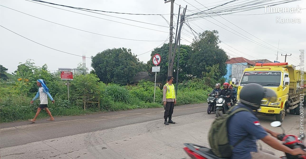 Strong Poin Sore, Iptu Yudi Kanit Binmas Laksanakan Gatur lalu lintas Di Simpang Jalan Raya Wadas Bojonegara
