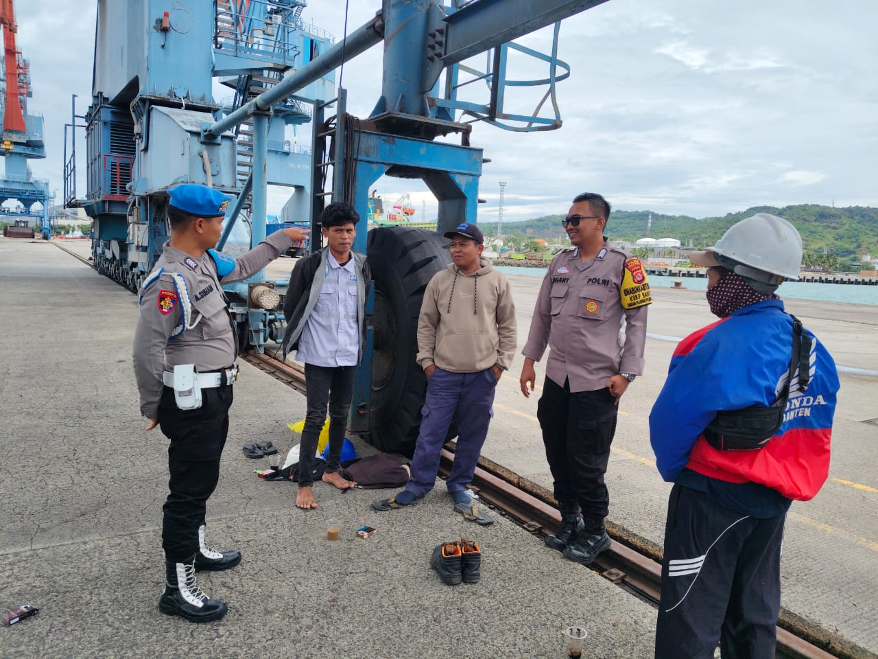 Jalin Silaturahmi, Bhabinkamtibmas Polsek KP Banten Berbincang dengan Buruh Sekitar Pelabuhan