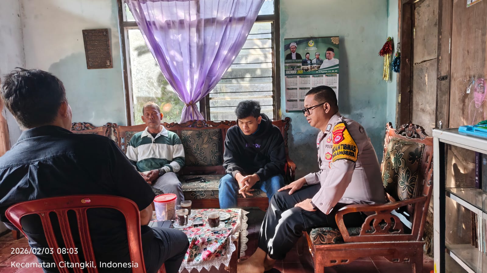 Cilegon - Bhabinkamtibmas Polsek Ciwandan Polres Cilegon Polda Banten Menyapa warga serta Ajak warga Binaannya untuk berperan aktif jaga keamanan lingkungan serta jalin komunikasi agar tercipta situasi aman di daerah hukum Polsek Ciwandan Polres Cilegon Polda Banten, Selasa (03/02/2026).