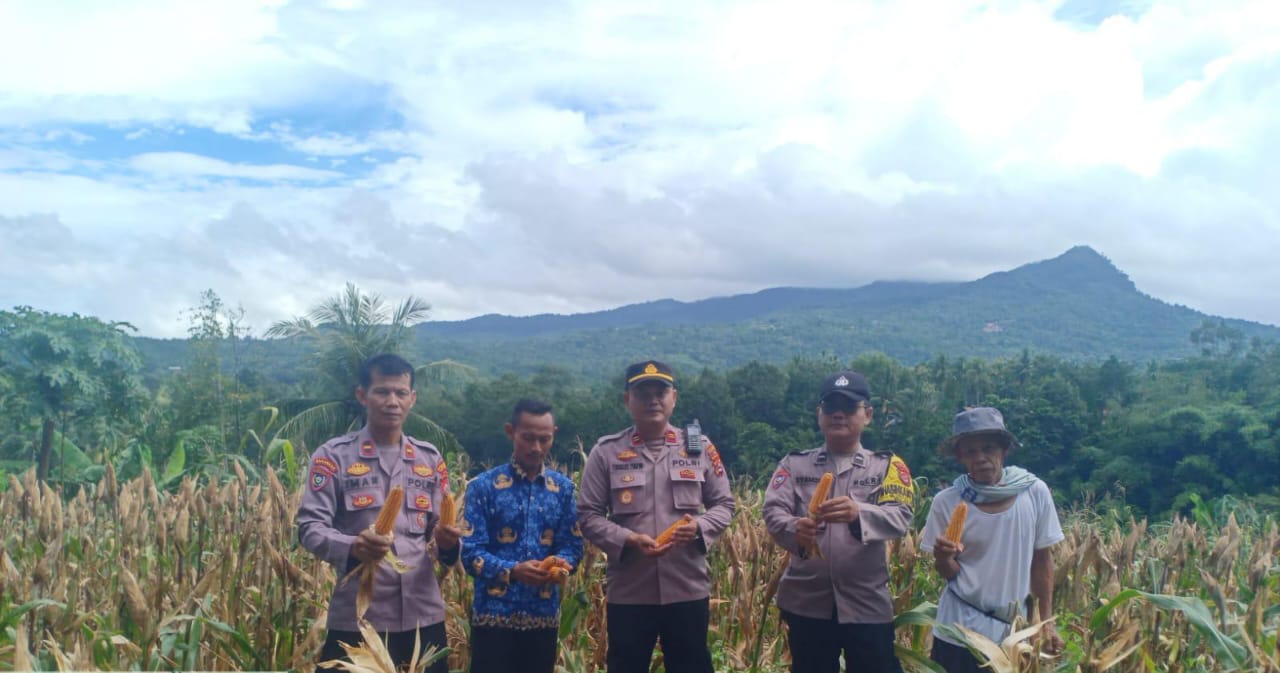 Personel Polsek Anyar Lakukan Pendampingan Panen Jagung Kelompok Tani Desa Kewilayahan
