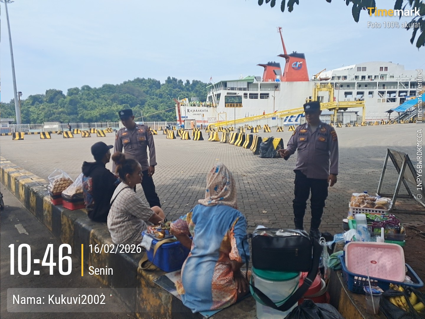 Cilegon - Personel Polsek Kskp Merak Polres Cilegon Polda Banten melaksanakan sambang dan patroli kawasan pelabuhan merak dalam rangka menjaga Harkamtibmas di Kawasan Pelabuhan Merak, Senin (16/02/2026).