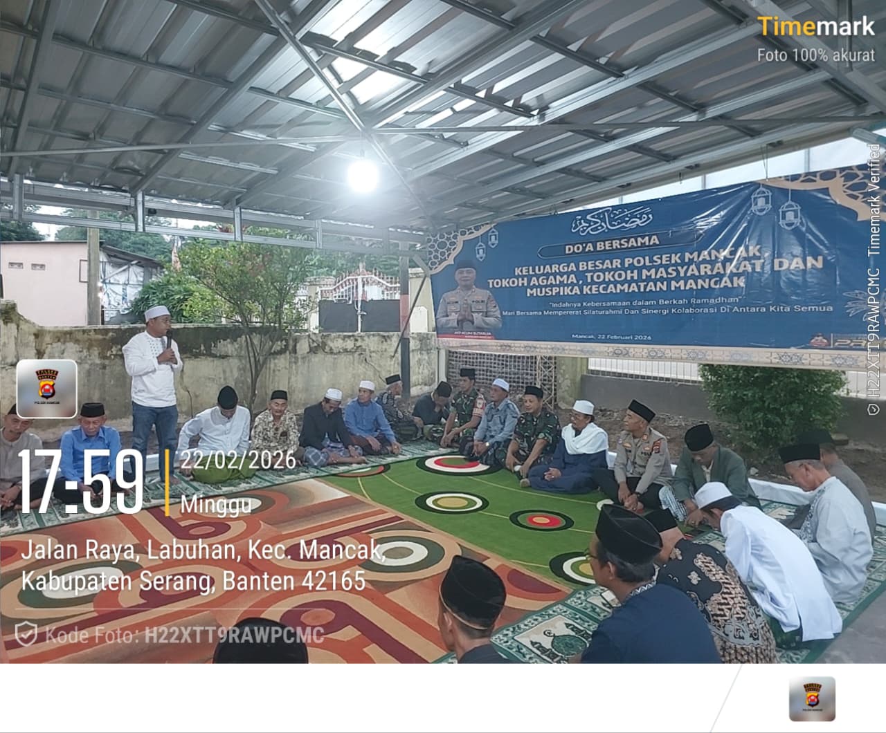 Cilegon – Polres Cilegon Polda Banten, Dalam rangka meningkatkan silaturahmi dan implementasi program kerja Kapolres Cilegon Trending, Polsek Mancak mengadakan kegiatan Doa dan Buka Puasa bersama Unsur Forkopimda, Toga dan Tomas Kec. Mancak. Minggu (22/02/2026).