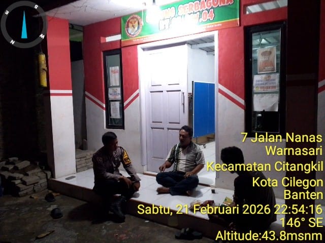 Cilegon - Bhabinkamtibmas Polsek Ciwandan Polres Cilegon Polda Banten kontrol Pos Ronda dan Berikan himbauan kepada pihak terkait dan warga, agar kegiatan Siskamling ditingkatkan lagi, Minggu (22/02/2026).