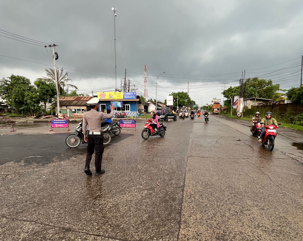 Strong Poin, Hadirkan Unit Lantas Polsek Ciwandan Dalam Pengaturan Lalu Lintas Pagi Hari.