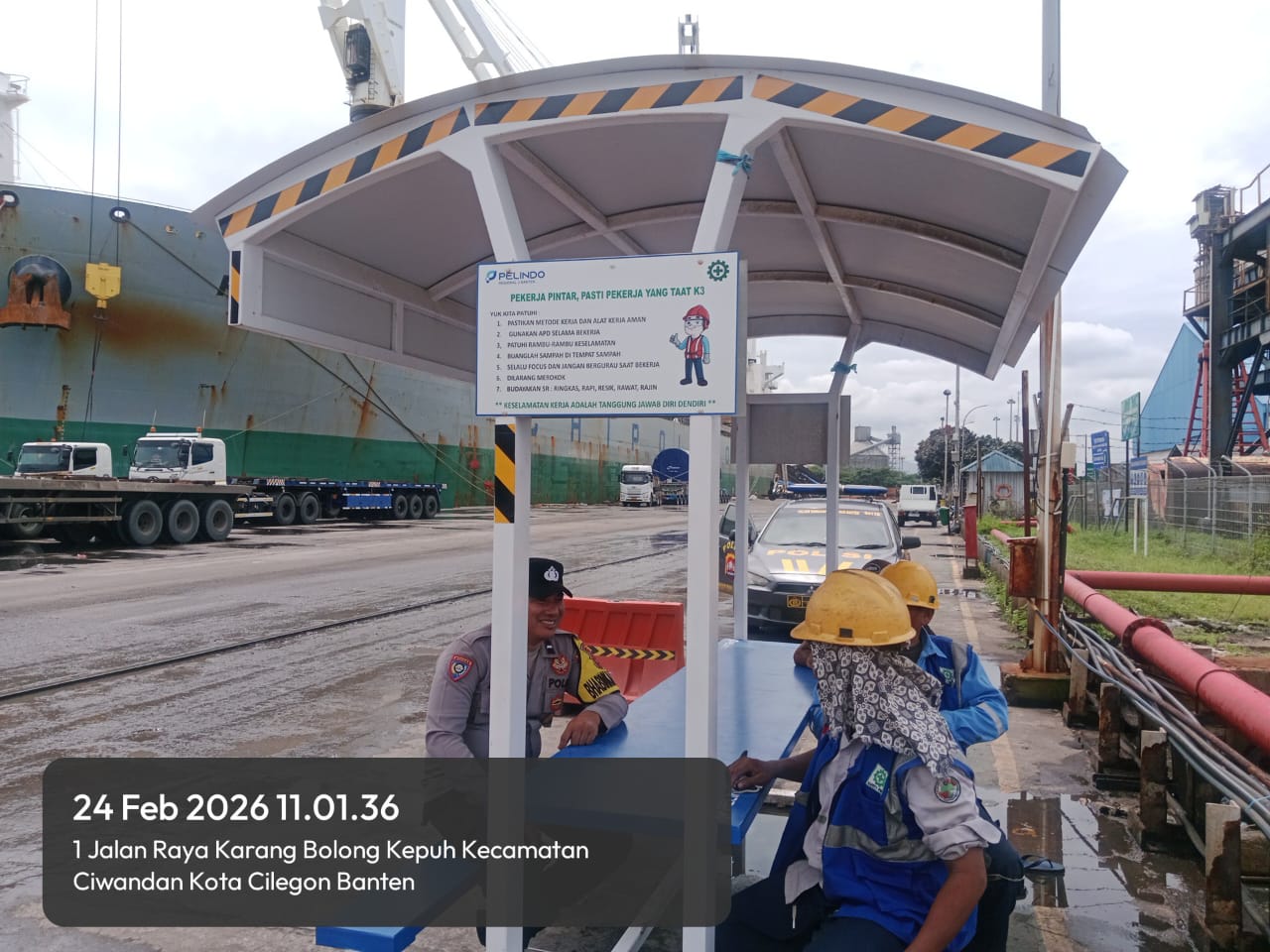 Anggota jaga melaksanakan Kegiatan patroli antisipasi pelaku asmoro dan bajing loncat kepada angkutan Truck bongkar muat dari pelabuhan. Adapun Kegiatan tersebut berupa patroli dari area dermaga pelabuhan hingga jalur perlintasan dan titik-titik kerawanan di areal PT. Pelindo Ciwandan.