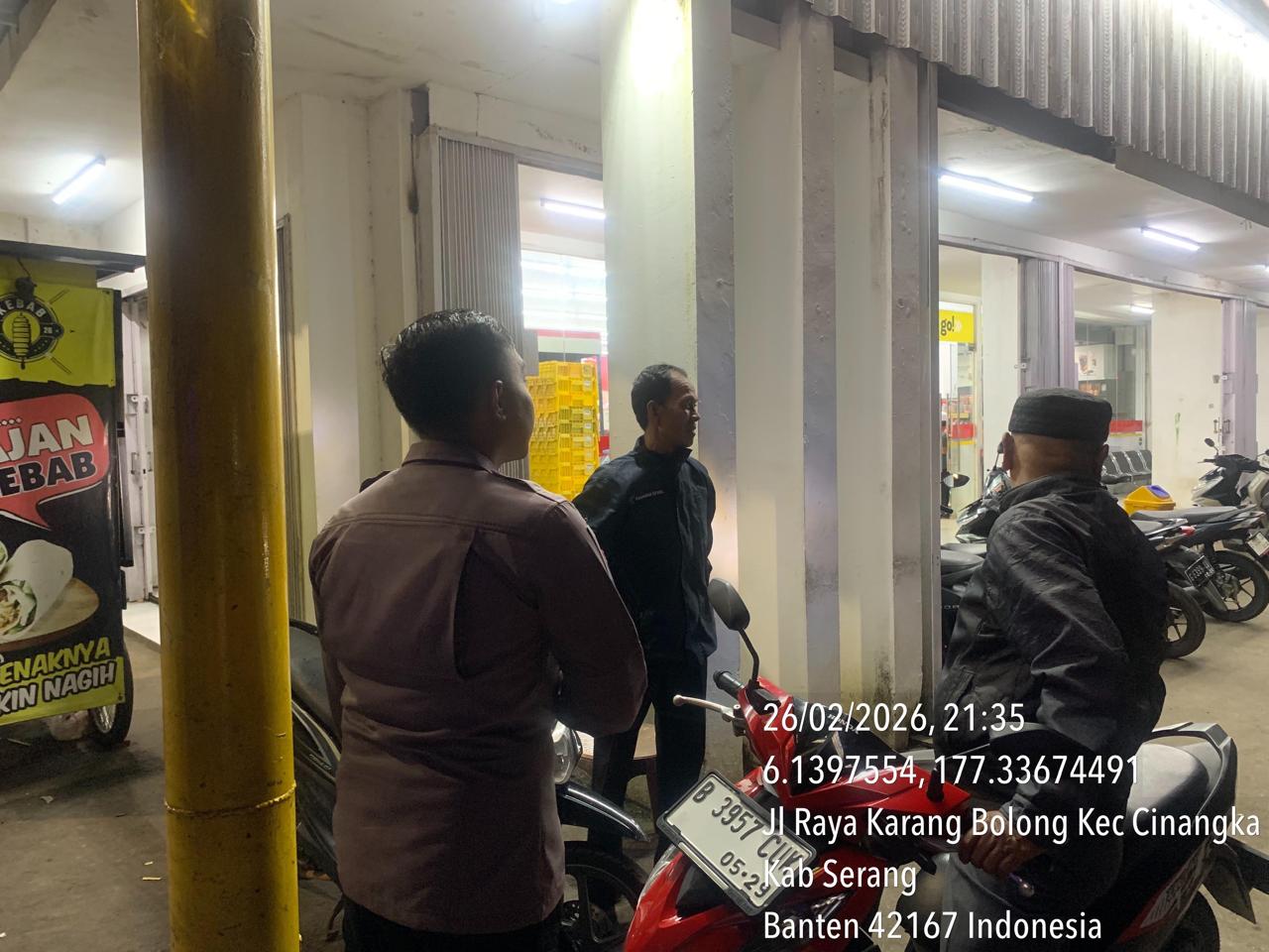 *Cilegon* – Dalam Rangka Pencegahan Kejahatan Jalanan dan Memelihara situasi keamanan dan menjaga serta memberikan rasa aman dan nyaman di masyarakat,Salah satu upaya untuk mewujudkan hal tersebut sebagaimana yang dilakukan oleh Personil Polsek Cinangka Polres Cilegon Polda Banten melaksanakan giat patroli blue light malam hari hingga menjelang pagi, Jumat (27/02/2026).