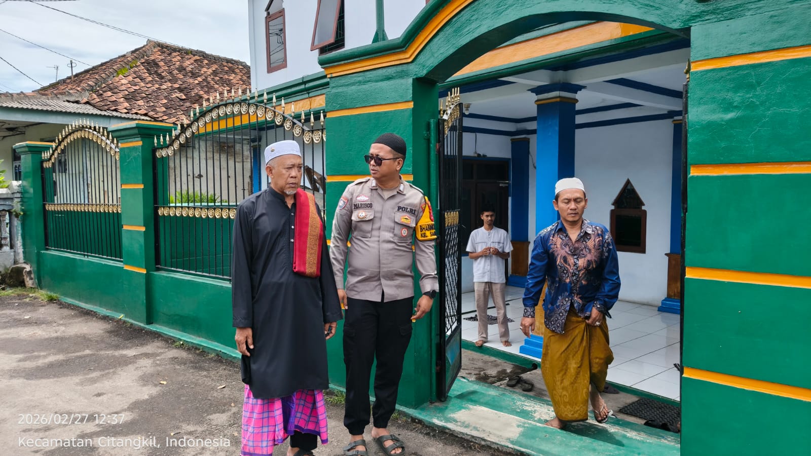 Cilegon - Bhabinkamtibmas Polsek Ciwandan Polres Cilegon Polda Banten Selesai melaksanakan Sholat secara berjama’ah dan Sampaikan Himbauan-himbauan Kamtibmas Kepada Masyarakat Jama'ah Yang ada Dimasjid, Jum'at (27/02/2026).