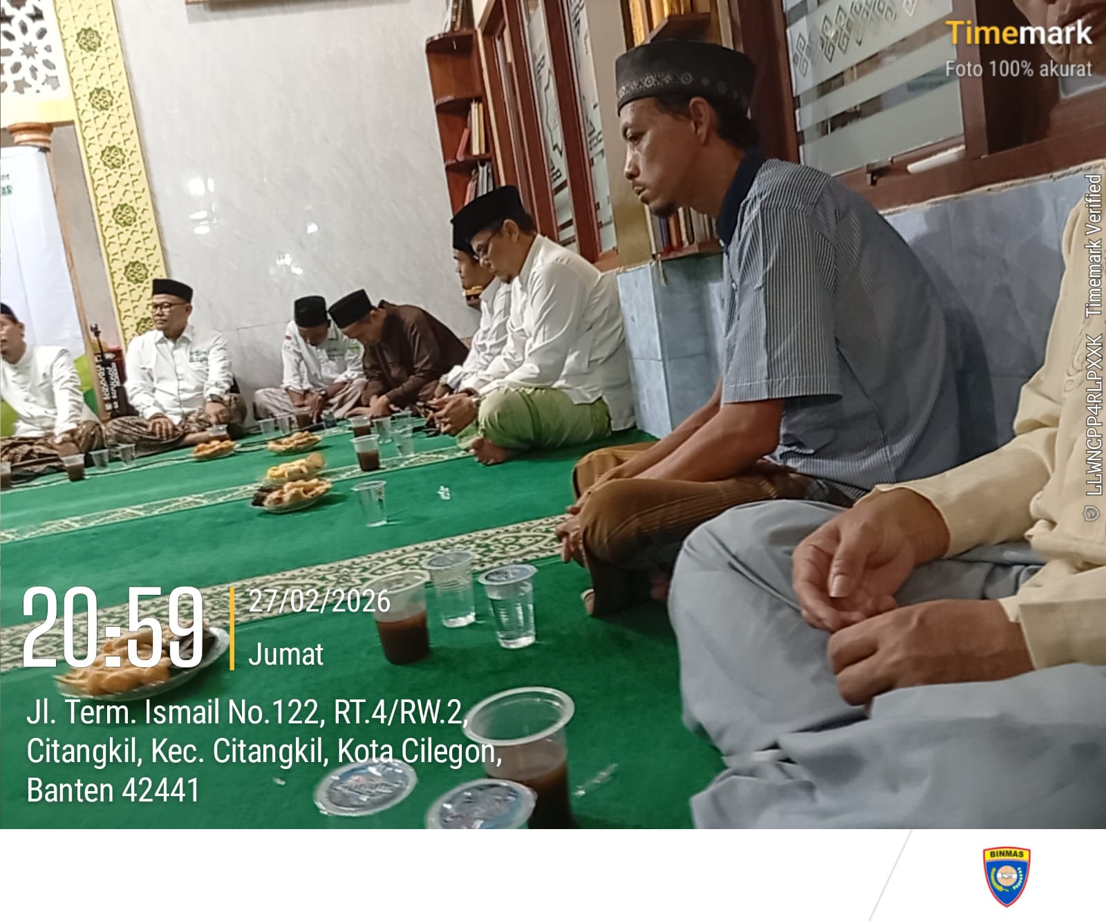 Cilegon - Polres Cilegon melalui Bhabinkamtibmas AIPDA WARUDIN melaksanakan kegiatan Tarwih Keliling (Tarling) di Mesjid Nurul Ikhlas, Link.Tegal cabe RT 01 RW 02 Kel.Citangkil, Jum'at (27/02/2026) malam. Kegiatan ini dihadiri oleh Lurah Citangkil, Babinsa SERKA JANDRI, Ketua DKM, PCNU dan rombongan, serta masyarakat setempat.