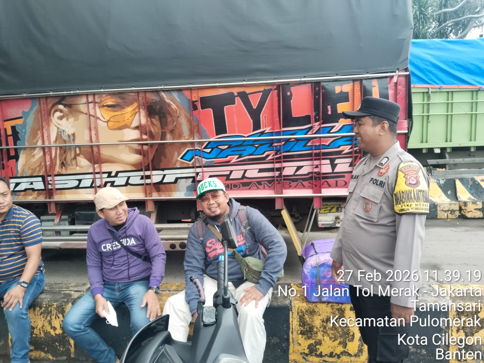 Cilegon - Personel Polsek Kskp Merak Polres Cilegon Polda Banten melaksanakan sambang dan patroli kawasan pelabuhan merak dalam rangka menjaga Harkamtibmas di Kawasan Pelabuhan Merak, Jumat (27/02/2026).
