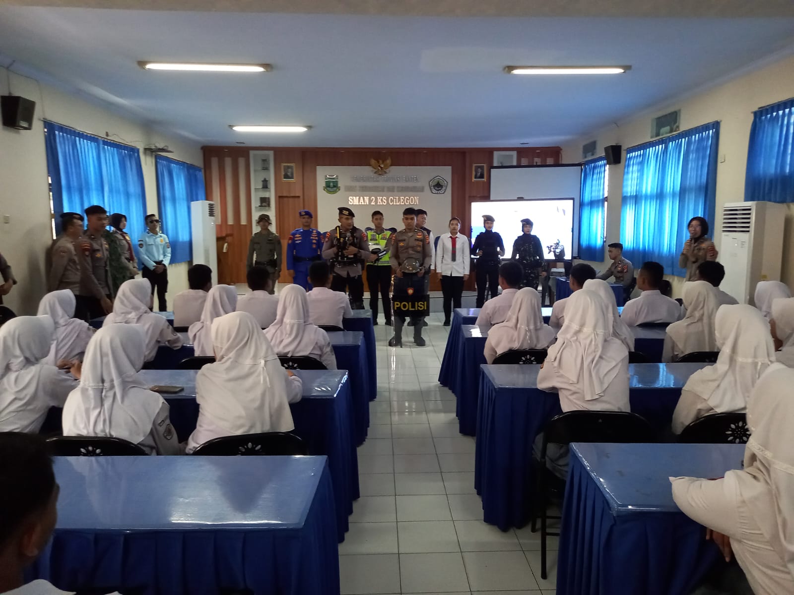KAPOLSEK PURWAKARTA DAMPINGI BIRO SDM POLDA BANTEN SOSIALISASI PENERIMAAN POLRI DI SMA NEGERI 2 CILEGON