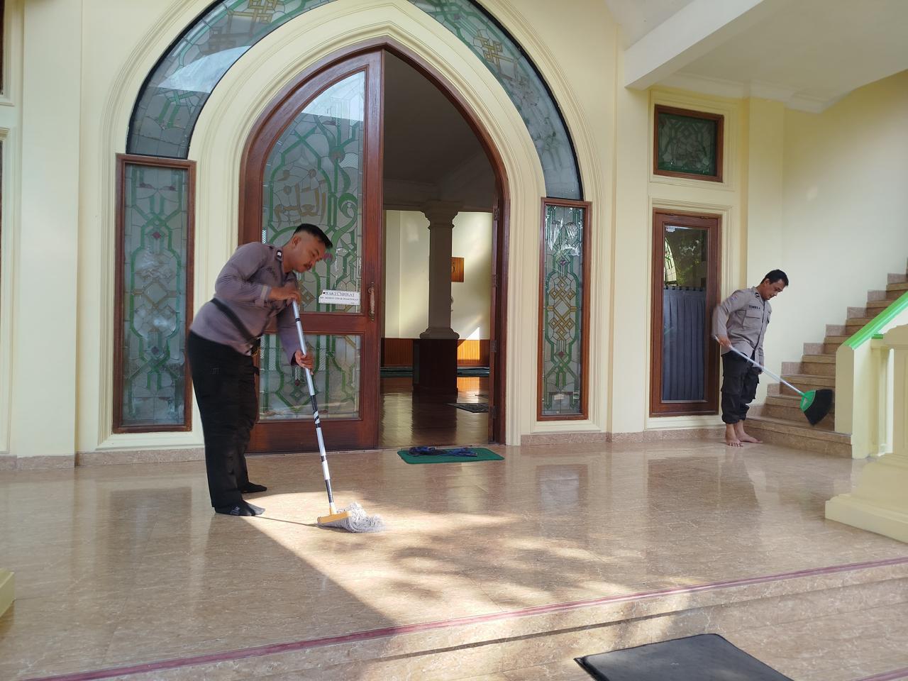 Personil Polsek Cinangka dengan sigap membersihkan masjid, mulai dari membersihkan lantai, membersihkan kaca, hingga membersihkan tempat wudhu. Kegiatan ini juga diikuti oleh masyarakat sekitar yang ingin ikut serta dalam menjaga kebersihan Masjid.