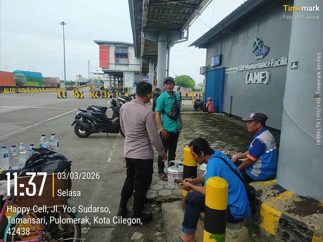 Cilegon - Personel Polsek Kskp Merak Polres Cilegon Polda Banten melaksanakan sambang dan patroli kawasan pelabuhan merak dalam rangka menjaga Harkamtibmas di Kawasan Pelabuhan Merak, Selasa (03/03/2026).