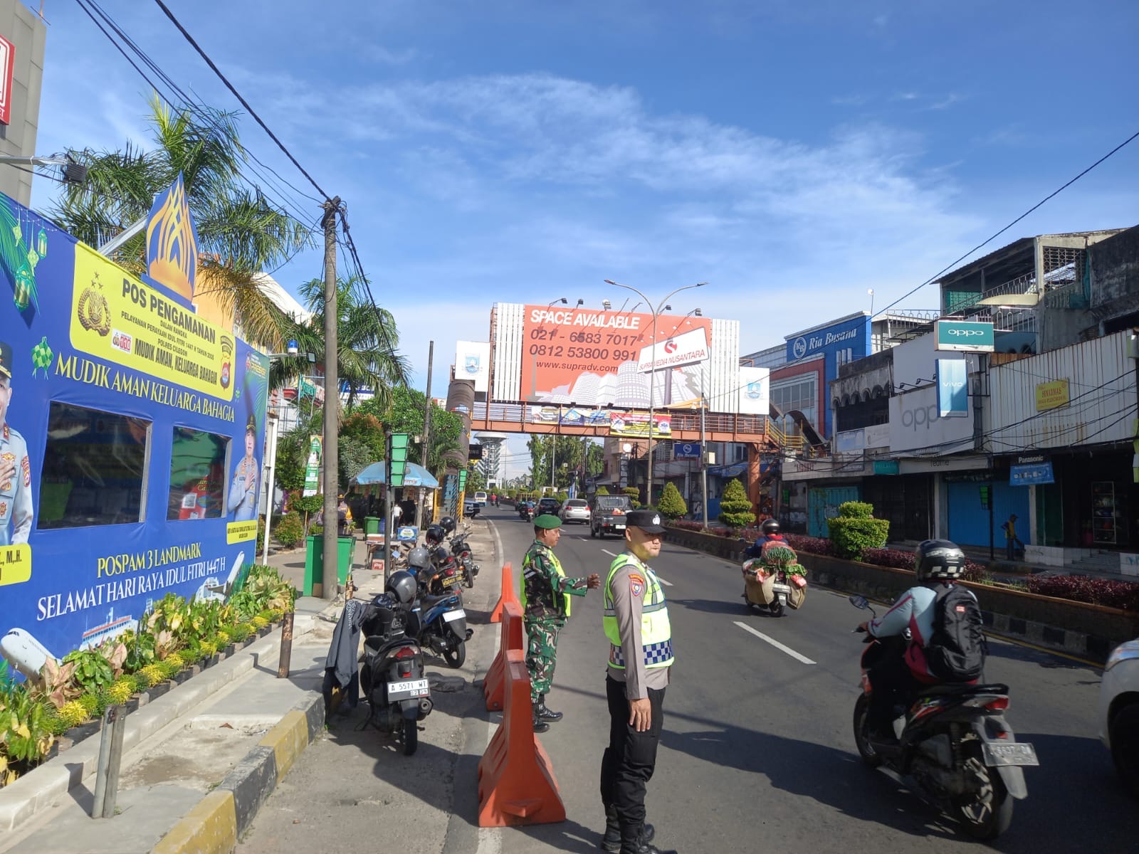 Personil Pos Pam 3 Landmark Melaksanakan Pe gaturan Pagi memperlancar Arus Lalu lintas