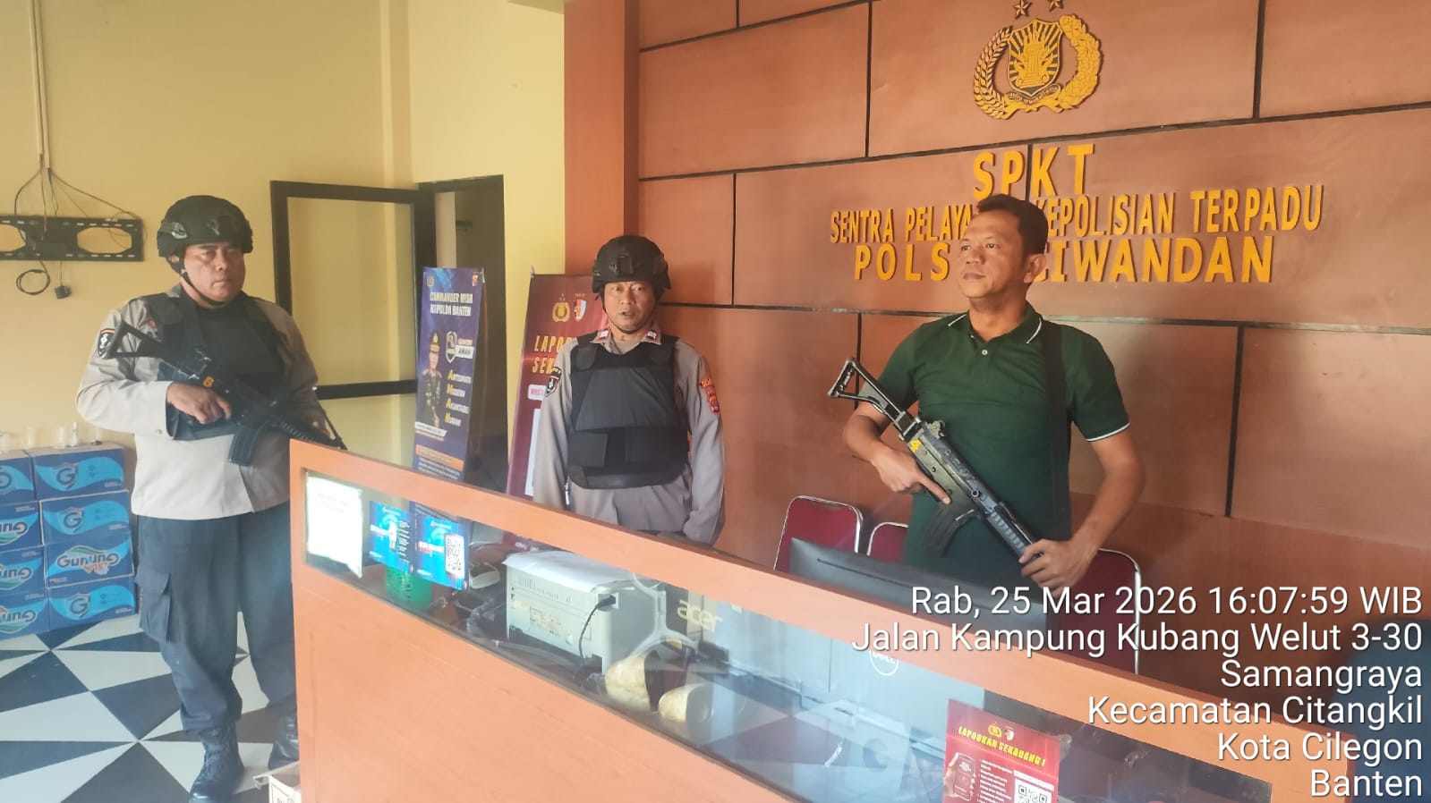 Cilegon - Dalam Kesiap Siagaan dan Memperketat Penjagaan Mako (Markas Komando), Personil Polsek Ciwandan Polres Cilegon Polda Banten melaksanakan Sistem Pengamanan Markas Komando (Sispam Mako), Rabu (25/03/2026).