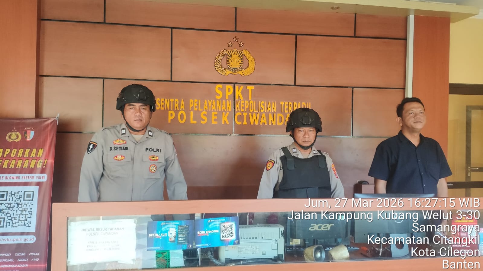 Cilegon - Guna mengantisipasi adanya potensi ancaman dan gangguan terhadap keamanan kantor maupun keselamatan personel piket jaga, Personil Polsek Ciwandan Polres Cilegon Polda Banten selalu tingkatkan kesiapsiagaan dan kewaspadaan dengan rutin menggelar kegiatan Sistem Pengamanan Mako (Sispam Mako), Jum'at (27/03/2026).
