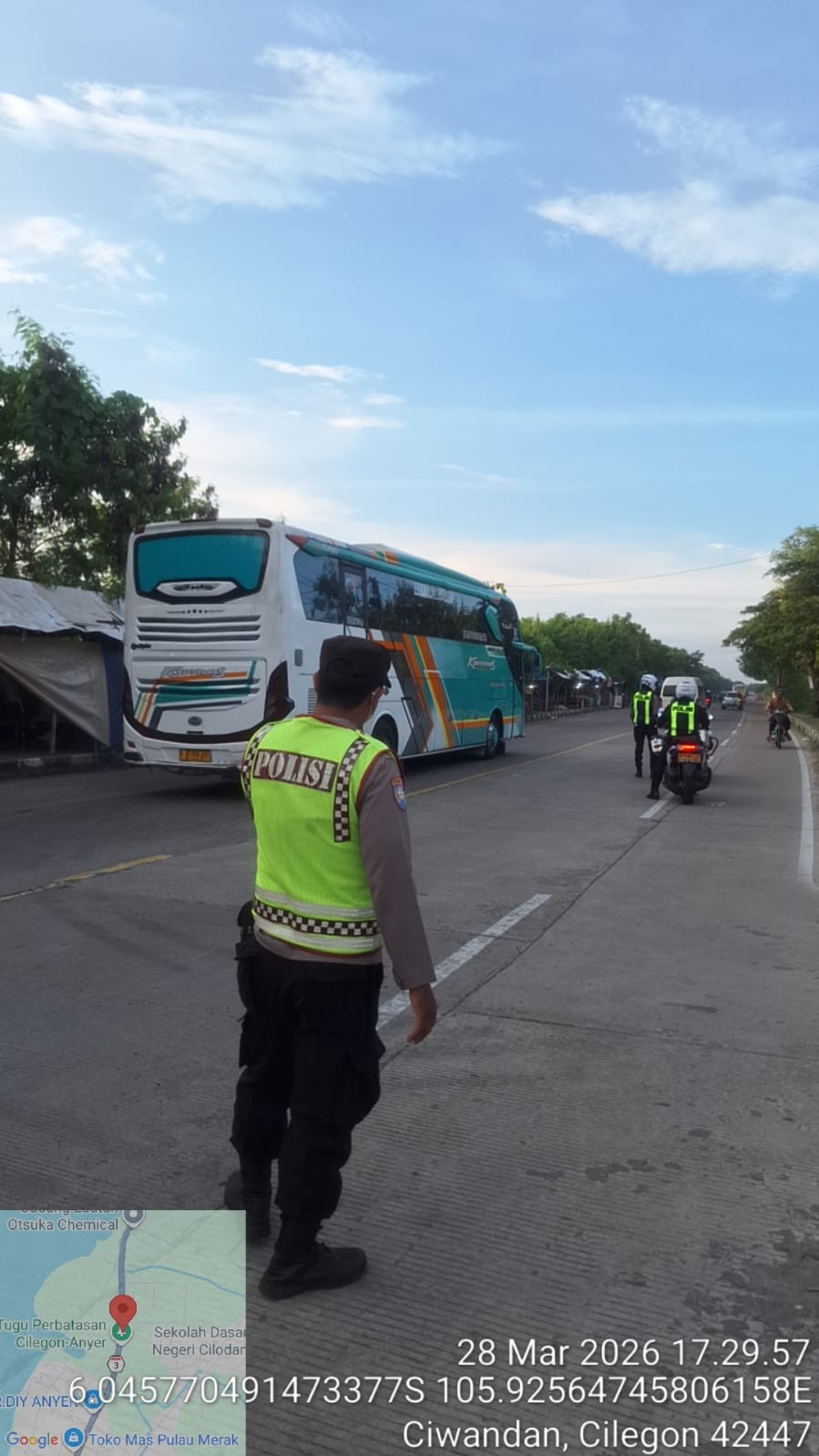 Cilegon - Polsek Ciwandan melaksanakan Kegiatan Rutin Yang Ditingkatkan (KRYD) dan monitoring jalur wisata di depan Pos Lantas JLS Ciwandan. Kegiatan ini bertujuan untuk membantu kelancaran arus lalu lintas dan memberikan pelayanan kepada masyarakat guna menciptakan keamanan dan ketertiban lalu lintas, Sabtu (28/03/2026).
