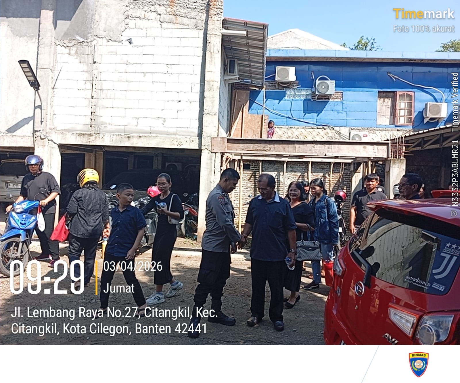 Cilegon - Wujud nyata pelayanan dan kehadiran Polri di tengah masyarakat ditunjukkan oleh Kapolsek Ciwandan Polres Cilegon Polda Banten KOMPOL Achri Dwi Yunito Dalam Pelaksanaan Pengamanan kegiatan keagamaan di Rumah Ibadah Pendeta Paul yang berlokasi di Lingkungan Tegal Cabe Kelurahan Citangkil Kecamatan Citangkil, Kota Cilegon,Jum’at (03/04/2026)