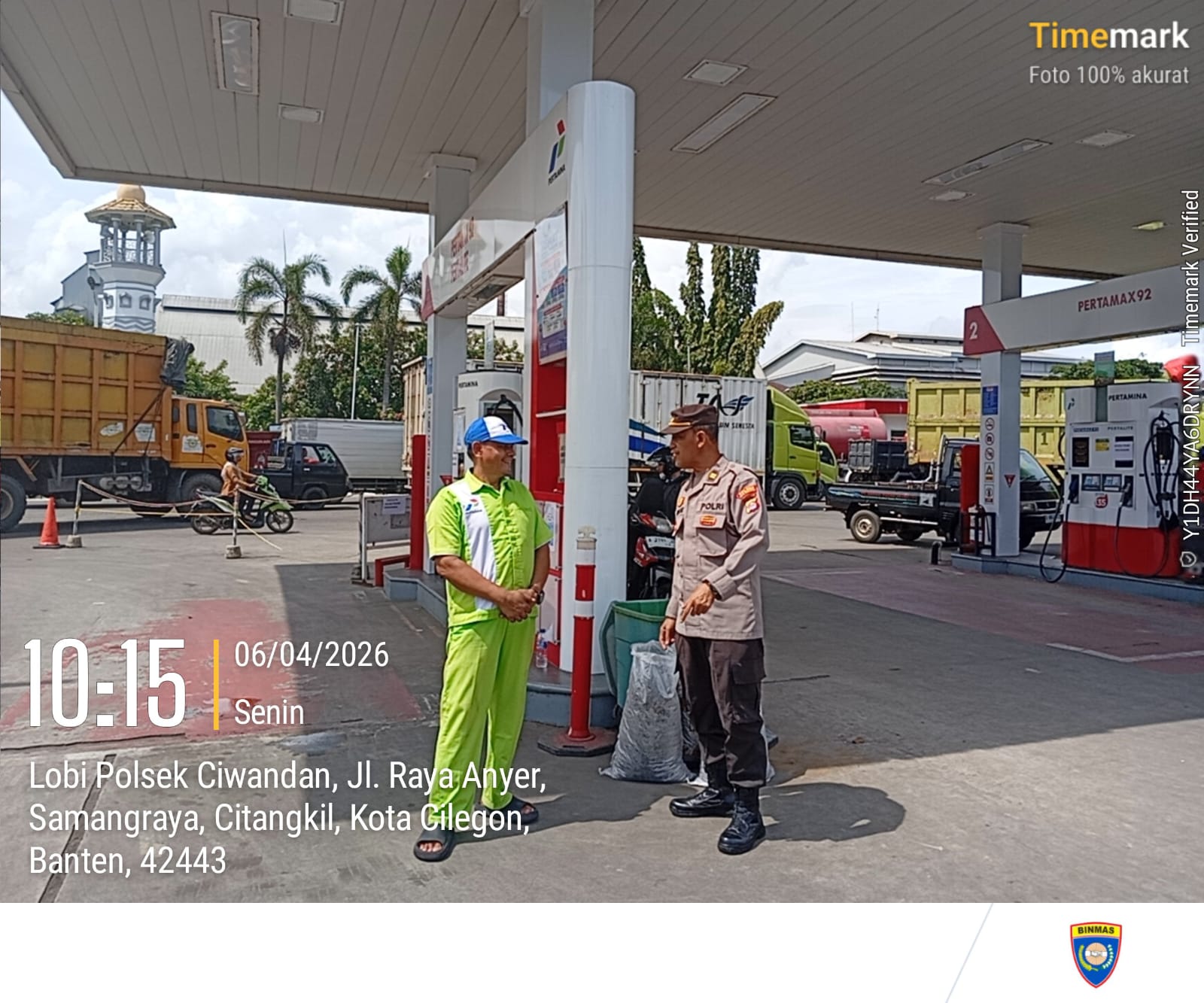 Cilegon - Polres Cilegon melaksanakan program Quick Wins Presisi dalam rangka kunjungan sambang dan DDS ke SPBU yang berada di wilayah hukum Polsek Ciwandan. Kegiatan ini juga bertujuan untuk memantau stok BBM di wilayah tersebut,Senin (06/04/2026).