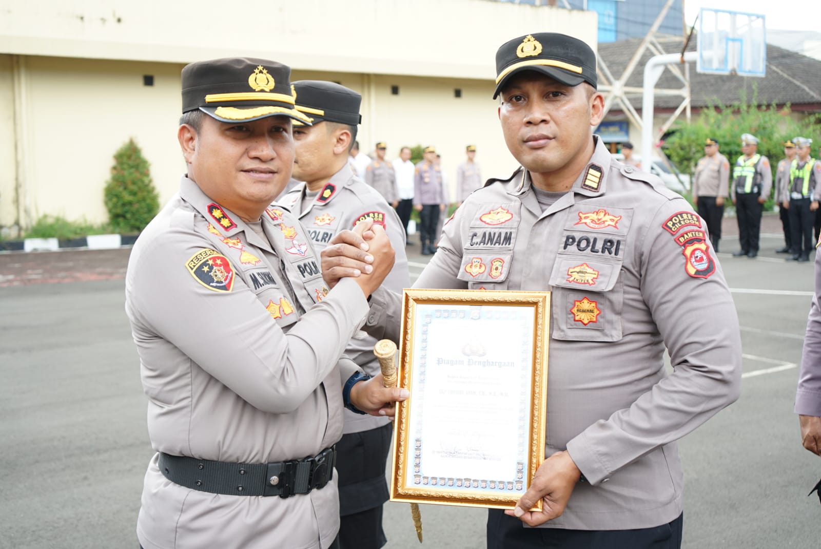 Penghargaan tersebut diberikan langsung oleh Kapolres Cilegon AKBP Dr. Martua Raja Taripar Laut Silitonga, S.H., S.I.K., M.Si., dalam rangkaian kegiatan upacara yang dilaksanakan di Lapangan Apel Satya Haprabu Polres Cilegon pada Senin (06/04/2026).