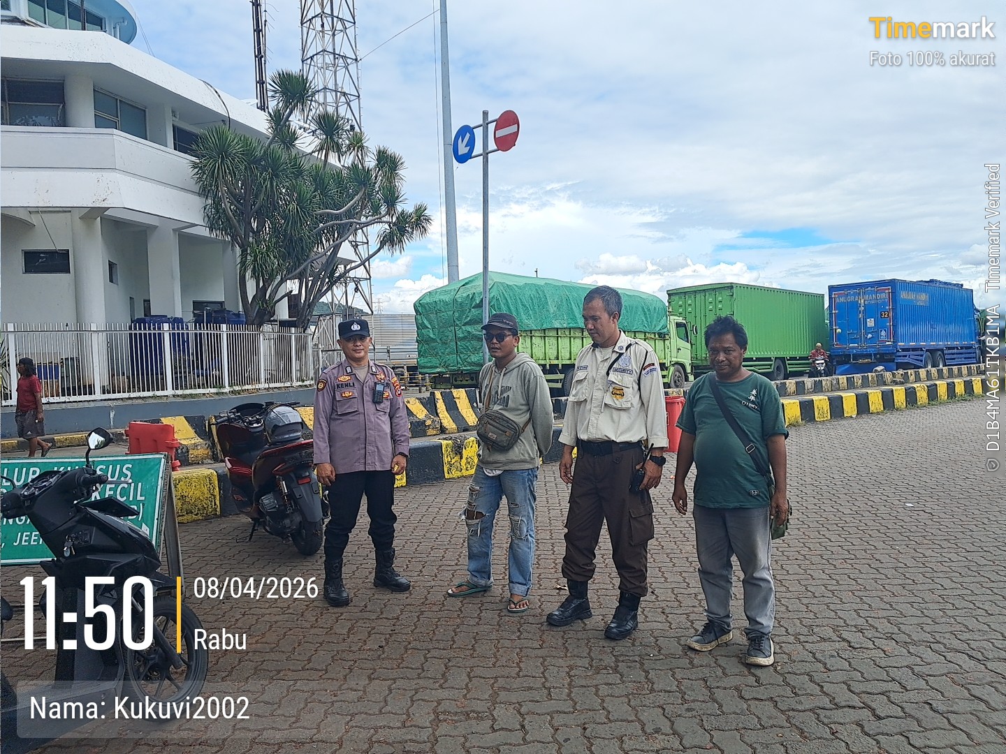 Cilegon - Personel Polsek Kskp Merak Polres Cilegon Polda Banten melaksanakan sambang dan patroli kawasan pelabuhan merak dalam rangka menjaga Harkamtibmas di Kawasan Pelabuhan Merak, Rabu (08/04/2026).