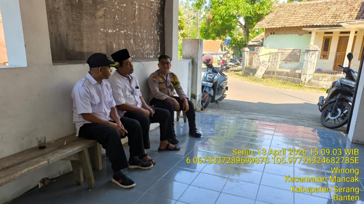 Cilegon – Polres Cilegon Polda Banten, dalam rangka ciptakan situasi kamtibmas kondusif Bhabikamtibmas Desa Winong Kec. Mancak BRIPKA Arie Sufiadi laksanakan himbauan kamtibmas dengan Staf Desa Winong dan Masyarakat, agar selalu menjaga kamtibmas secara bersama-sama di wilayah. Senin (13/04/2026).