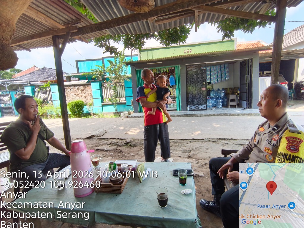 Cilegon - Polres Cilegon Polda Banten. Bhabinkamtibmas Desa Anyer Kec. Anyer AIPDA Isvana memberikan Rasa aman dilingkungan dengan melaksanakan patroli dialogis dan menyapa warganya serta menyampaikan himbauan kamtibmas di Kp. Paku Desa Anyar Kec. Anyar, Kab Serang. Senin (13/04/2026).