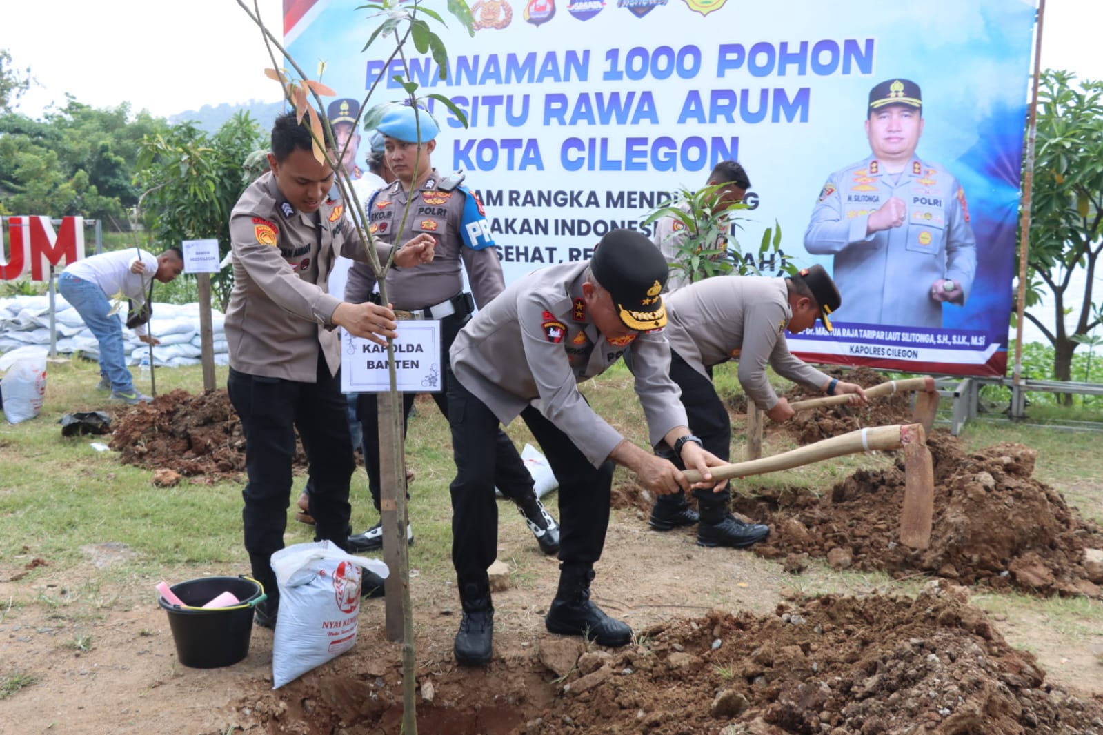 Cilegon – Upaya nyata menjaga kelestarian lingkungan terus digencarkan. Polda Banten bersama unsur TNI, pemerintah daerah, dan masyarakat menggelar kegiatan penanaman 1.000 pohon di kawasan Situ Rawa Arum, Kelurahan Rawa Arum, Kecamatan Grogol, Kota Cilegon, Jumat (17/04/2026).