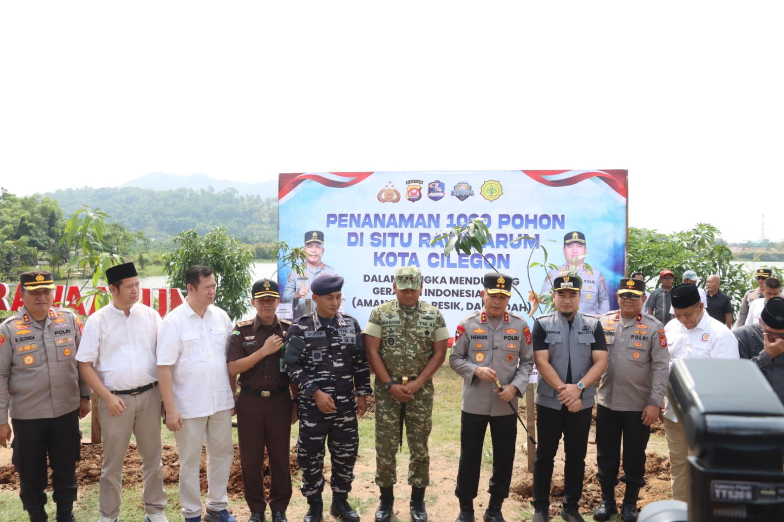 Cilegon – Upaya nyata menjaga kelestarian lingkungan terus digencarkan. Polda Banten bersama unsur TNI, pemerintah daerah, dan masyarakat menggelar kegiatan penanaman 1.000 pohon di kawasan Situ Rawa Arum, Kelurahan Rawa Arum, Kecamatan Grogol, Kota Cilegon, Jumat (17/04/2026).