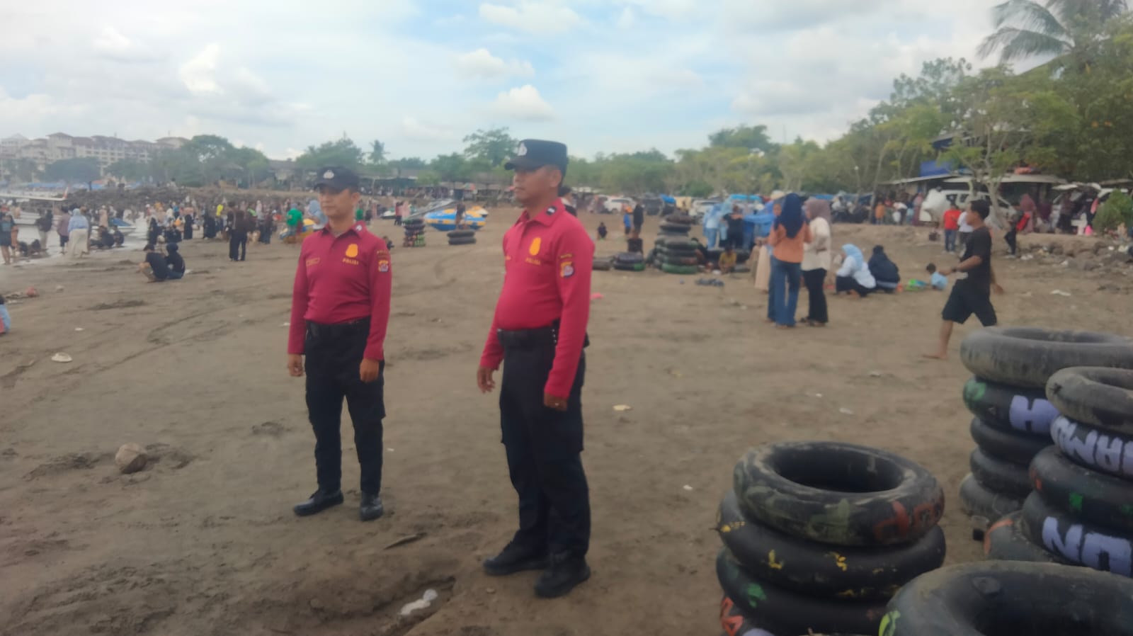 Personel Satpamobvit Polres Cilegon melaksanakan patroli wisata serta memberikan himbauan kepada para pengunjung, guna mewujudkan harkamtibmas di daerah hukum Polres Cilegon. Dengan pengawasan yang dilakukan oleh personel Satpamobvit Polres Cilegon, situasi di sekitar pantai ini tetap aman dari berbagai potensi ancaman.