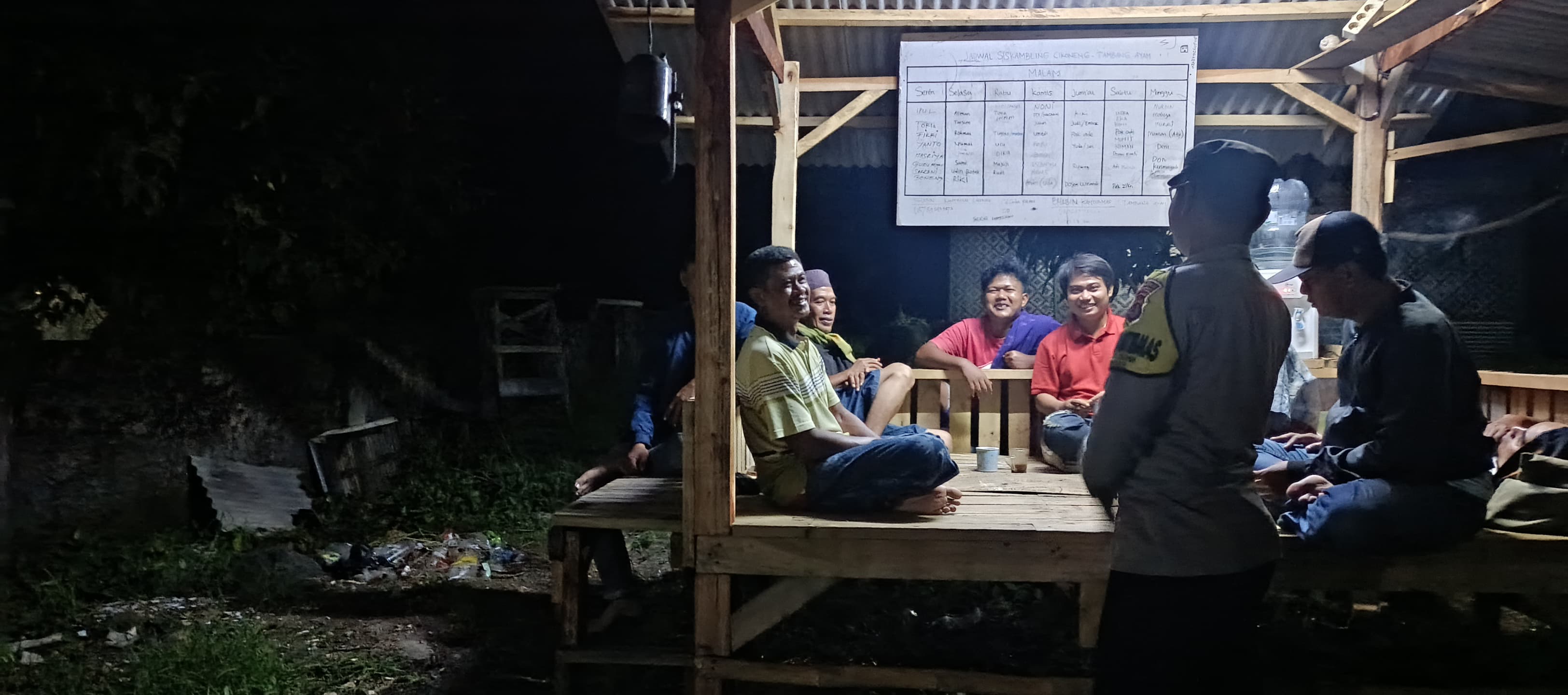 Cilegon - Personel Bhabinkamtibmas Polsek Anyar Polres Cilegon Polda Banten melaksanakan sambang Ronda Siskamling Dalam rangka menjaga Harkamtibmas dan Sebagai bentuk mendukung Program Quick Wins Presisi Polri, Minggu (19/04).