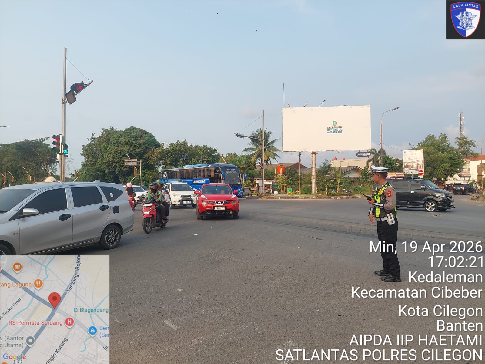 Cilegon, Satlantas Polres Cilegon Polda Banten – Berikan pelayanan kepada masyarakat Kasat lantas Polres Cilegon AKP Ridwan memerintahkan jajaran lalulintas untuk melaksanakan pengaturan lalu lintas di penggal – penggal jalan yang rawan kemacetan di Kota Cilegon, (Minggu,19/4/2026)