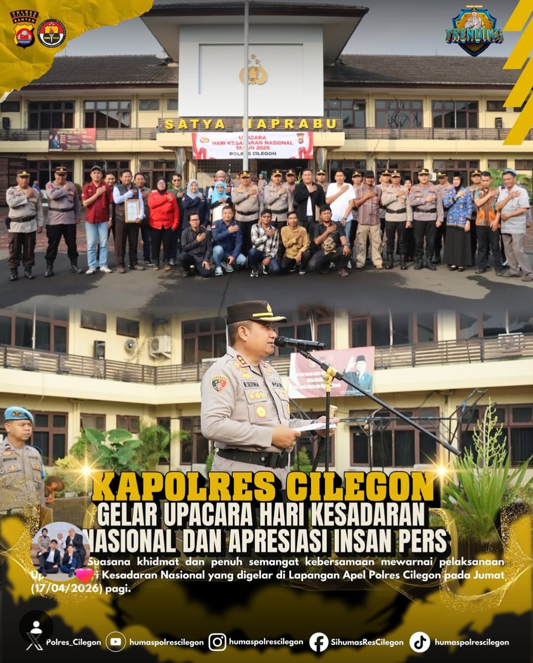 ​Acara pemberian penghargaan ini berlangsung khidmat di Markas Kepolisian Resor (Mapolres) Cilegon. Penghargaan tersebut diserahkan langsung oleh Kapolres sebagai pengakuan atas dedikasi para jurnalis dalam menyajikan informasi yang akurat, edukatif, dan mampu menangkal pemberitaan kebohongan (hoax) di tengah masyarakat.